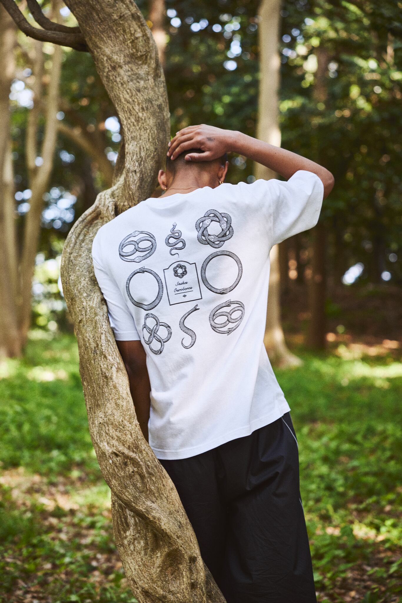 5.6オンスのしっかりとした生地感に、身丈・身幅・肩幅のバランスを整えたリラックスシルエットが魅力の一枚。背面には、永遠や無限、宇宙の循環を象徴する“ウロボロス”をモチーフとしたグラフィックを配置。神秘的な哲学性を帯びながら、日常にも自然と溶け込む存在感を放つデザインに仕上げています。